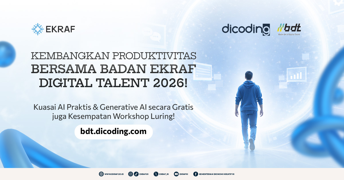 Kabar gembira bagi Anda para penggerak ekonomi kreatif dan antusias teknologi di tanah air! Tahun ini, Kementerian Ekonomi Kreatif/Badan Ekonomi Kreatif kembali bersinergi dengan Dicoding untuk meluncurkan program beasiswa eksklusif: Badan Ekraf Digital Talent (BDT) 2026.