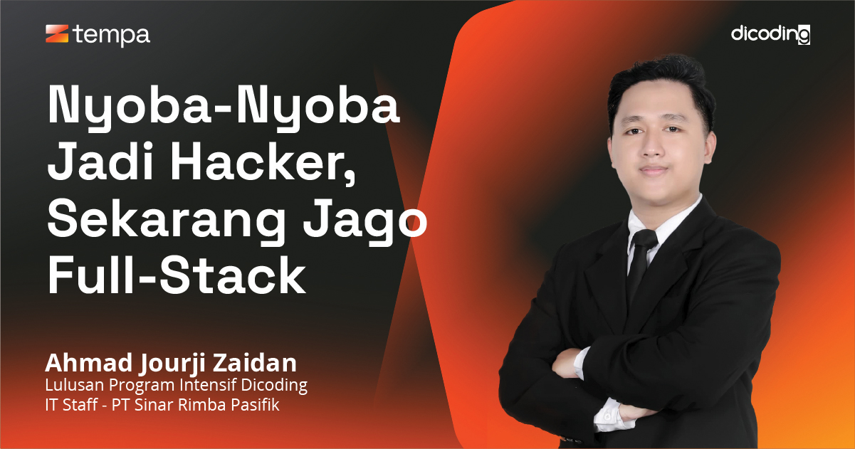 Kali ini, pengalaman tersebut datang salah satu lulusan program intensif Dicoding, Ahmad Jourji Zaidan (22) yang lebih akrab disapa Jourji. Ia akan menceritakan kisah perjalanannya sebagai anak IT dengan awal yang unik, yaitu menjadi seorang hacker. Penasaran seperti apa cerita serunya? Simak di bawah ini!