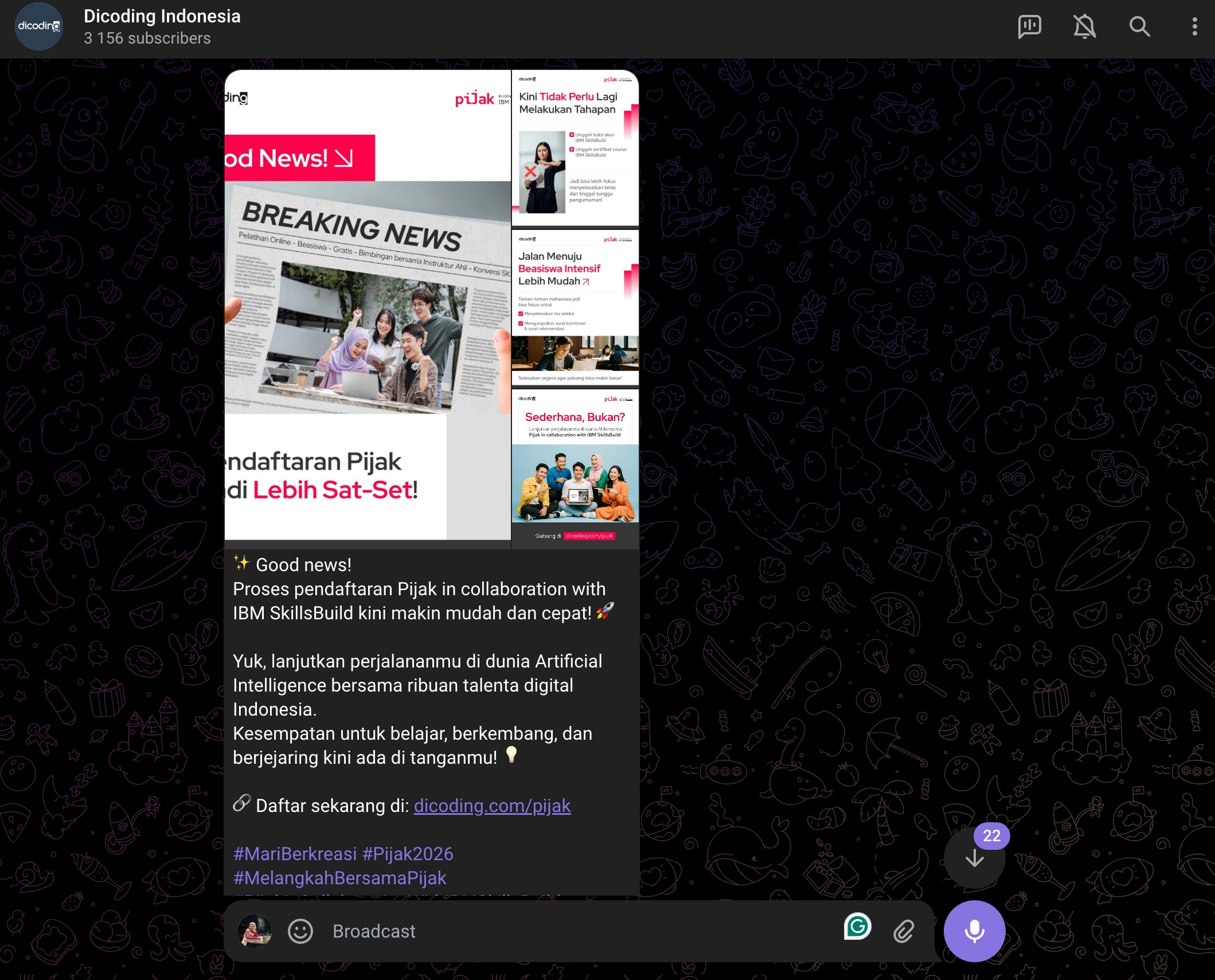 Berbeda dengan channel yang bersifat satu arah, fitur ini efektif digunakan untuk menyebarkan pengumuman seperti newsletter atau informasi kelas dengan kontrol privasi yang lebih baik.