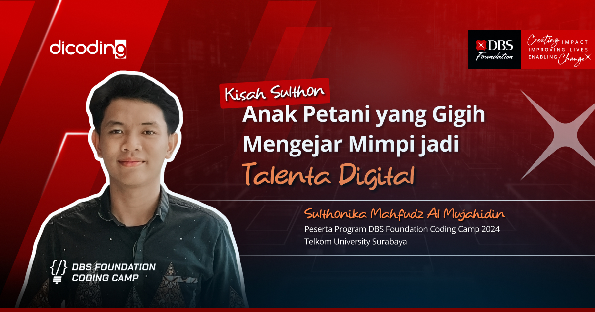 Meski sudah menimba ilmu di program studi Informatika, Telkom University Surabaya, Sulthon merasa bahwa ia harus menambah ilmu tentang coding untuk menjadi machine learning developer yang unggul. Dari situ, ia menemukan Coding Camp powered by DBS Foundation, program beasiswa pelatihan coding secara online.