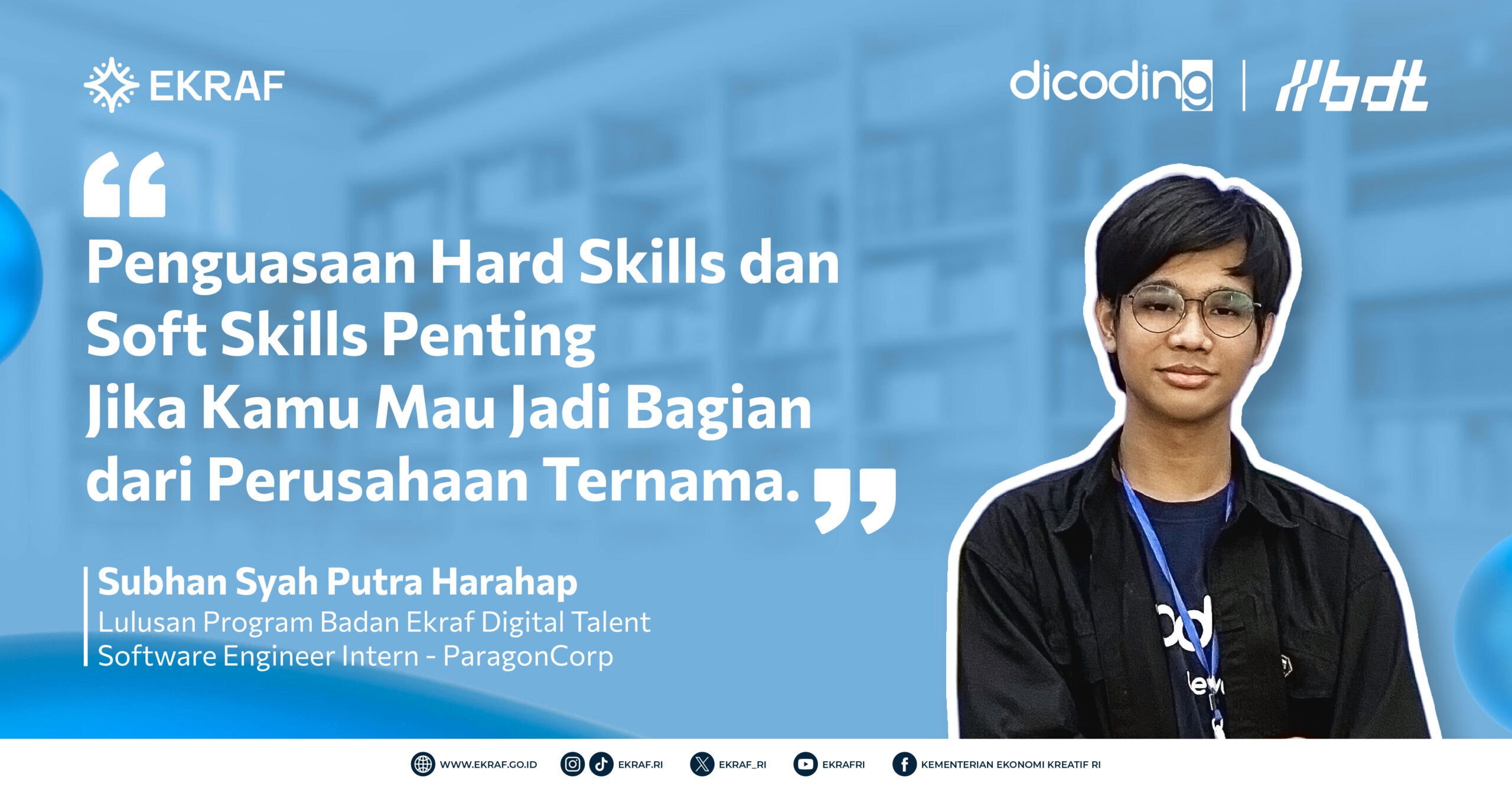 Untuk bisa menjadi bagian dari perusahaan ternama, khususnya sebagai talenta digital, ada berbagai bekal yang perlu kita siapkan. Subhan Syah Putra Harahap (22) mempersiapkan dirinya untuk menjadi bagian dari korporat besar dengan belajar secara mandiri dan ikut serta dalam program Badan Ekraf Digital Talent (BDT).