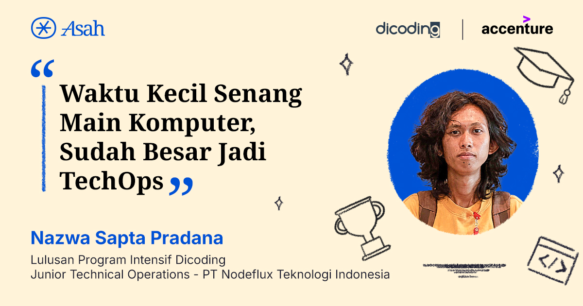 Jika iya, kamu punya kesamaan dengan Nazwa Sapta Pradana (24). Ketertarikannya pada dunia teknologi mulai tumbuh sejak ia memiliki komputer di rumah dan gemar mengeksplorasi perangkat tersebut.